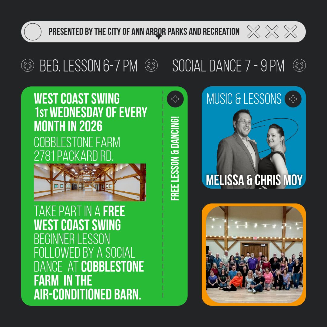 Located in the Grand Rapids/Western MI area, they offer a WCS lesson and social on the 2nd Sunday of each month. For information on their other offerings, visit their website.